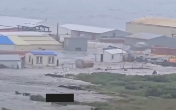 Di Severo-Kurilsk, perahu nelayan tersapu ke laut dan pelabuhan terendam.